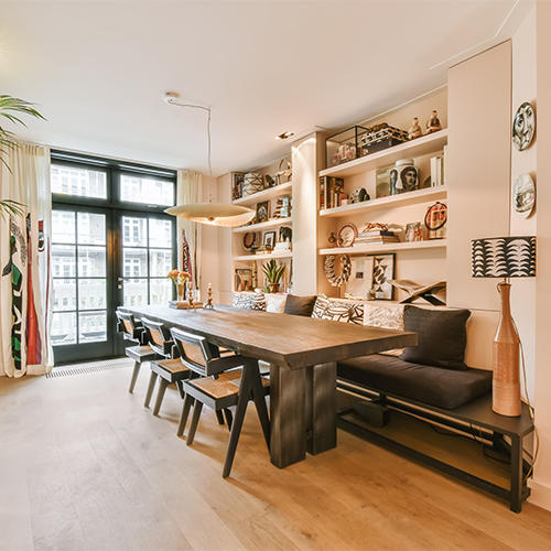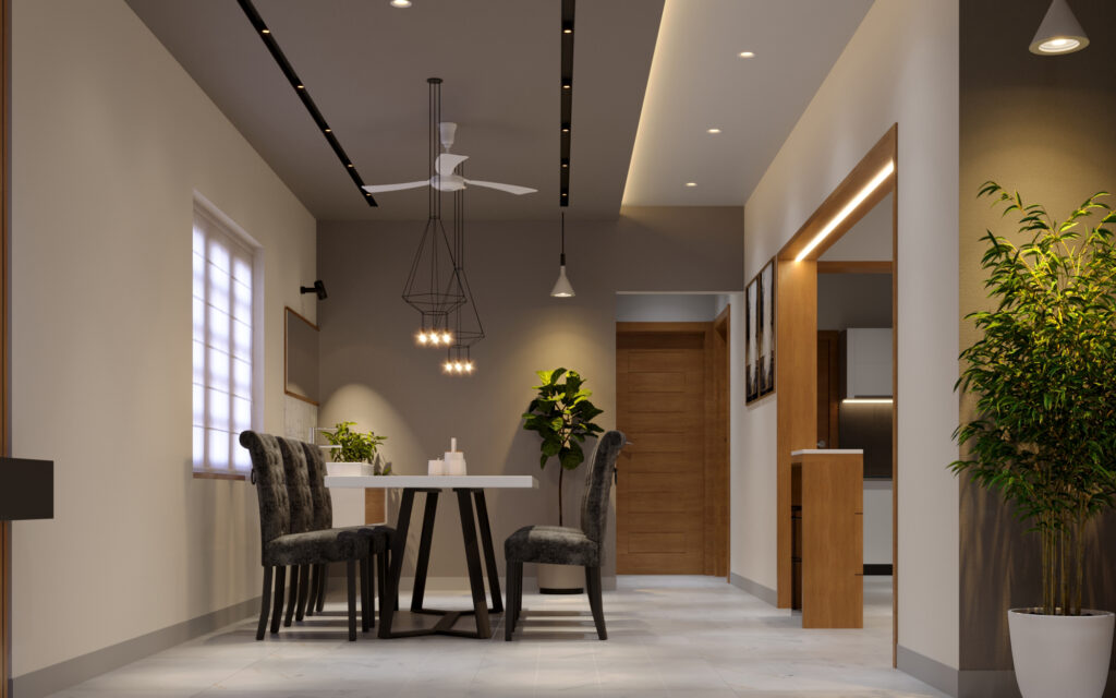 Lighting is also an important aspect of dining area design. Soft, ambient lighting is often used to create a warm and inviting atmosphere, while task lighting is used for specific activities like setting the table or serving food. Dining areas may feature chandeliers, pendant lights, or other types of lighting fixtures that are designed to enhance the ambiance of the space.